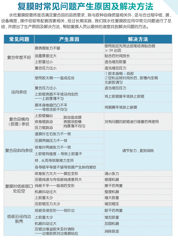 ???本品是乙烯--醋酸乙烯乳液與丙烯酸類乳液性能兼容的合成膠粘劑。涂布后結(jié)膜速度合理,復(fù)合品干燥時間短,挺度及牢度好,反光率高,忠于原色,無色相飄逸;覆膜膠蓋粉能力合適,干結(jié)物易于清洗,復(fù)合品耐軋線、砸凹凸和錕花,對燙金、印金、印銀均有較好適應(yīng)性;適應(yīng)溫度范圍廣,凍融穩(wěn)定,結(jié)冰解凍后可繼續(xù)使用;性價比高,工藝簡單,操作方便。